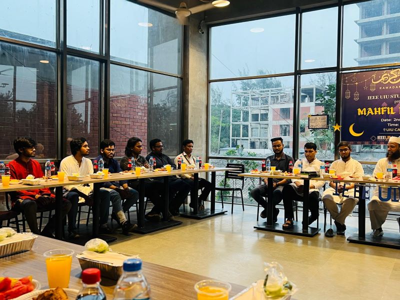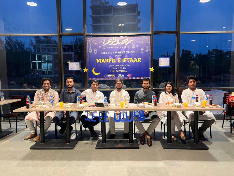 On April 2nd, 2024, IEEE UIU Student Branch hosted an Iftar event titled "Mahfil-e-Iftar" for its members. During the event, the Imam of the university mosque shared valuable insights on the virtues of fasting and its importance for students. The gathering concluded with a heartfelt collective prayer to Almighty Allah, taking advantage of the blessed moment during Iftar.